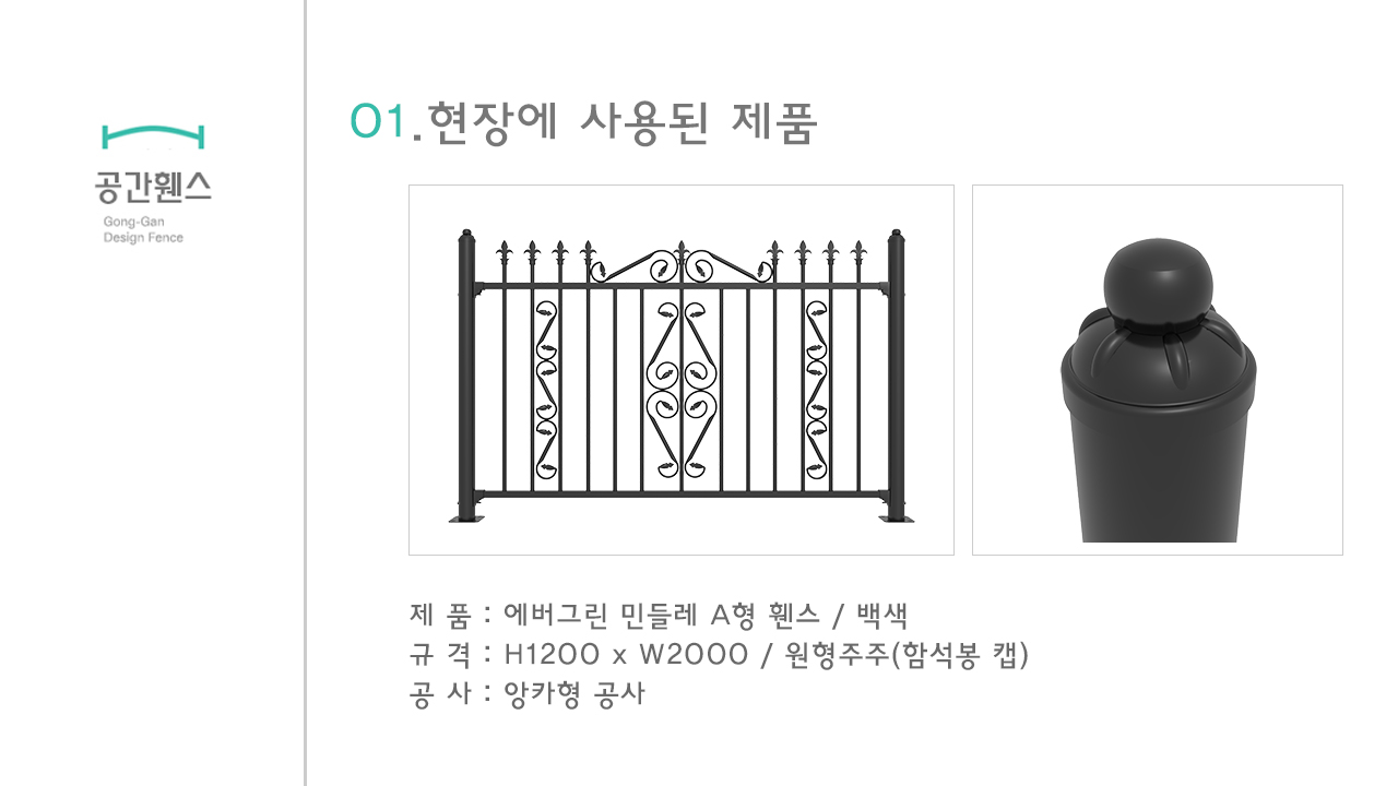 이번 현장에서 소개해 드릴 제품은 에버그린 민들레 A형 이라는 제품입니다. 에버그린 민들레 제품은 에버그린 포플러와 더불어 공간휀스 에버그린 제품 중 가장 많은 사랑을 받고 있는 제품입니다.