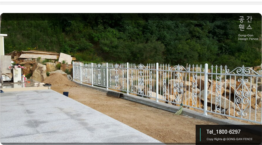 이번 현장은 경기도 동두천에 위치한 한 전원주택 앞 마당을 에버그린 민들레 A형 휀스를 이용하여 울타리를 설치하는 공사였습니다. 휀스는 보강토 위에 앙카형 원형주주로 설치 했습니다. 민들레 휀스의 경우 제품의 디자인이 휀스의 중앙을 중심으로 시작하기 때문에 휀스를 재단하기에도 유리한 제품입니다.