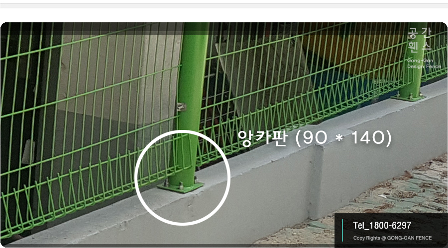하지만 이번 현장의 경우 이미 옹벽의 폭이 140 이하인 상태로 공사가 되어 있었습니다. 이럴 경우는 90 * 140의 앙카판을 사용해서 시공이 가능합니다. 다행인 점은 이번 현장에서 사용된 메쉬 휀스의 높이가 그리 높지 않고 가벼운 제품이였기 때문에, 90 * 140 앙카판으로도 충분히 튼튼하게 시공이 가능하였습니다.