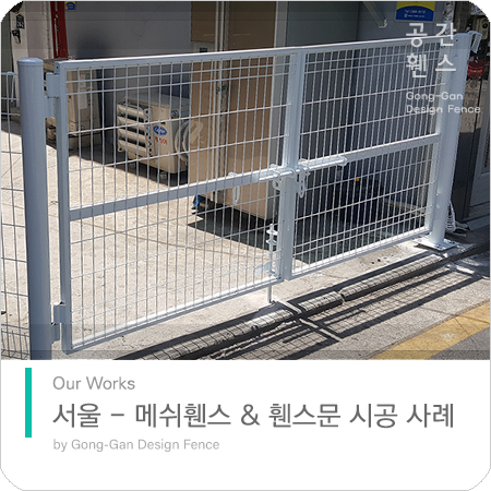 서울 - 메쉬 철망 휀스 좁은 옹벽 위에 설치 & 휀스문 시공 사례
