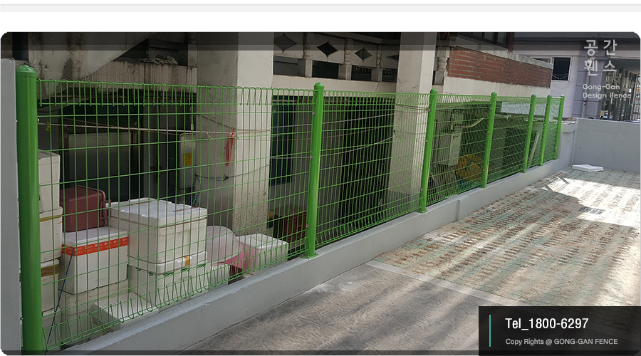 작은 현장이라 하나로 묶어서 한날 모두 공사를 완료하였습니다. 메쉬 휀스의 경우는 기본 색상은 연두색 휀스 제품을 사용하였고, 휀스문의 경우 역시 기본색상인 백색 제품을 사용하였습니다.